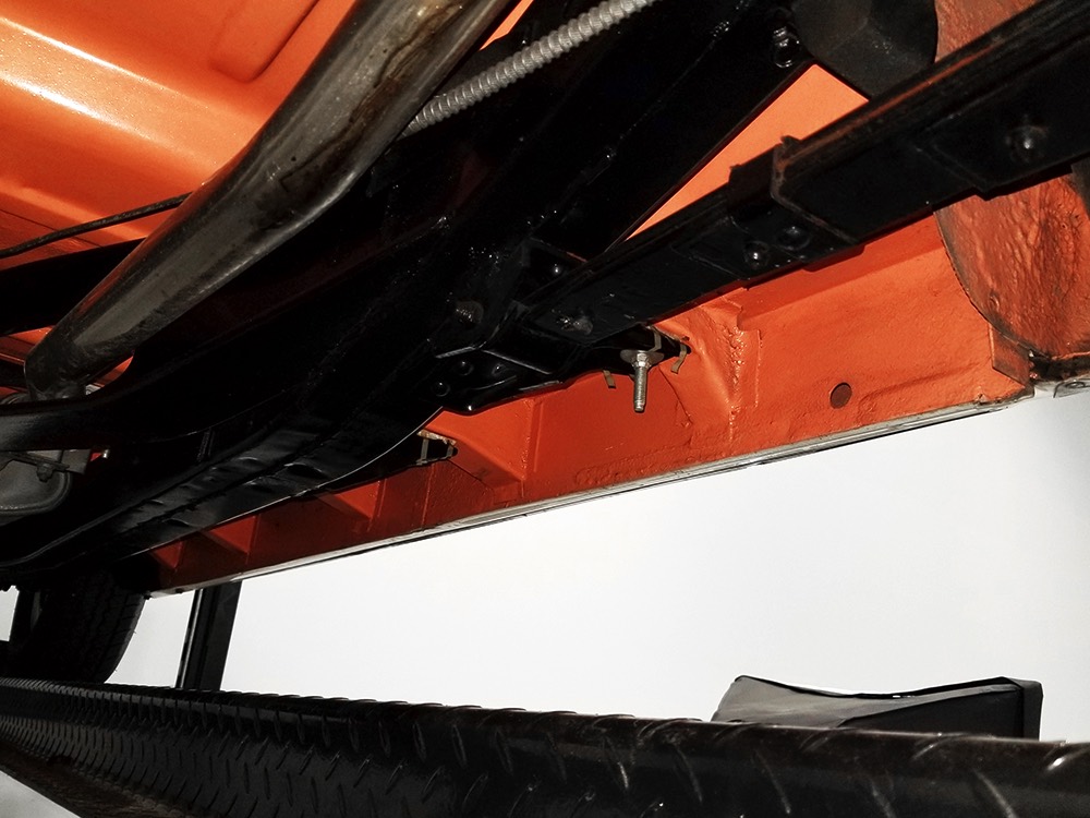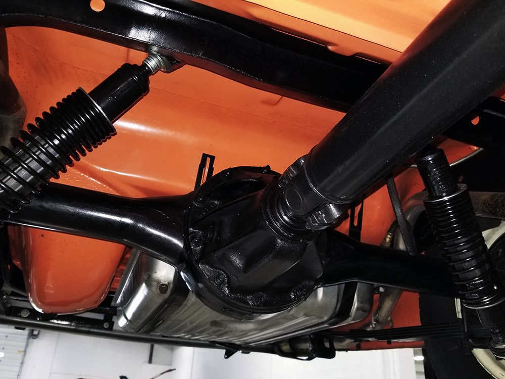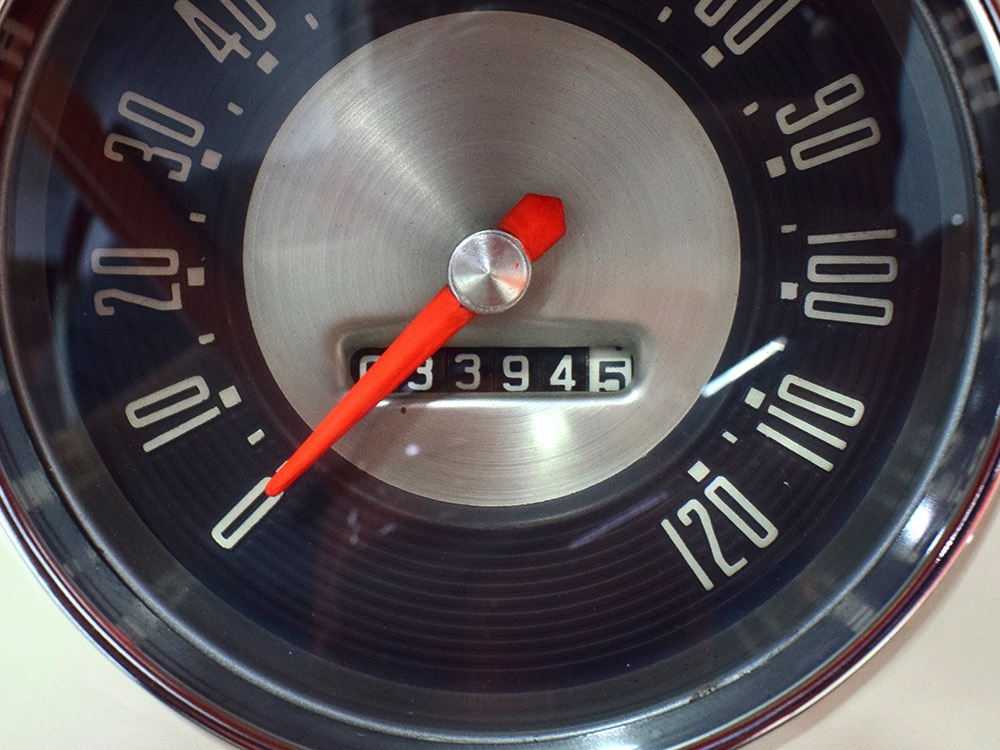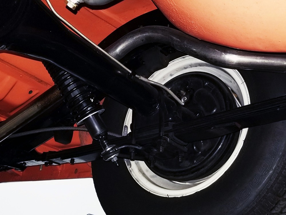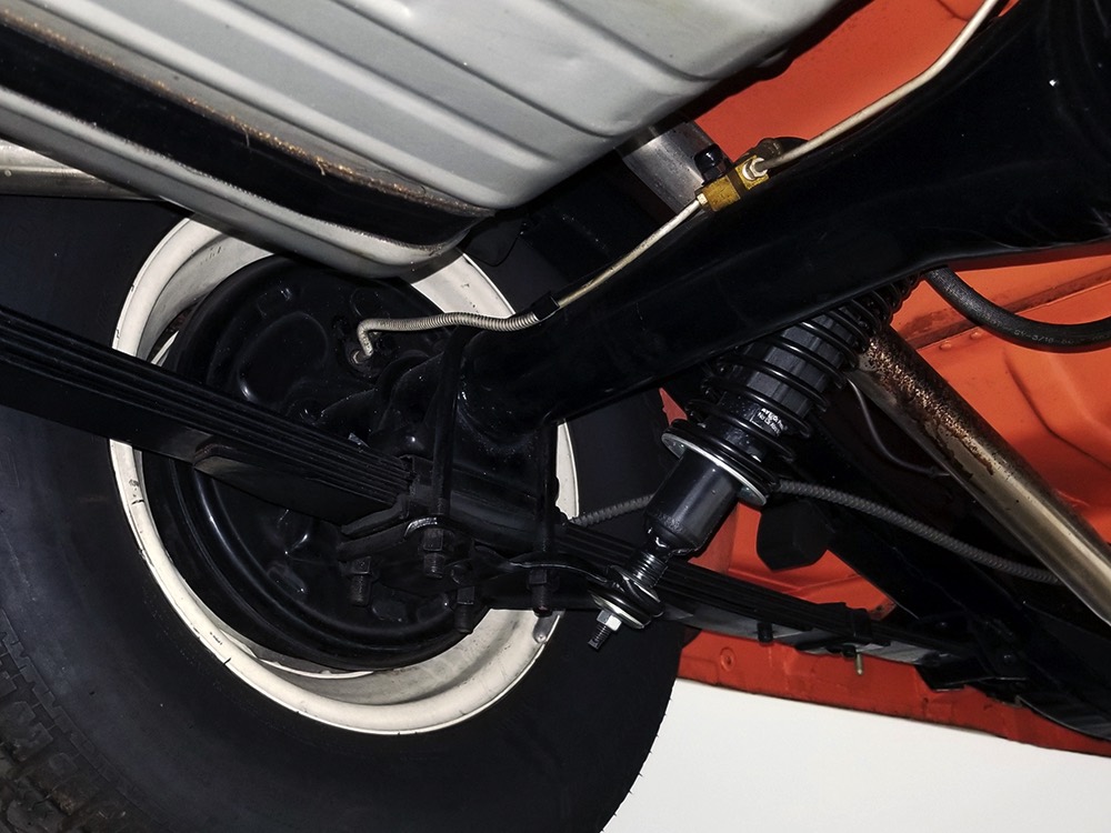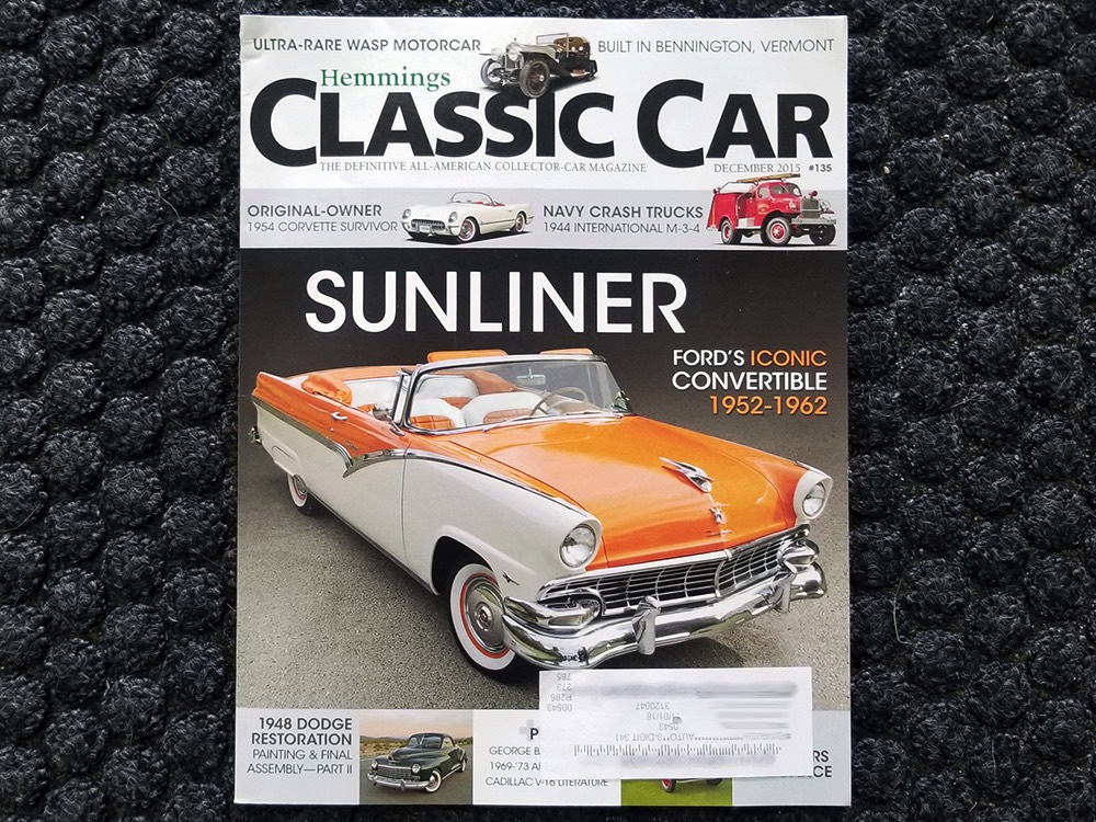 Underneath there’s a highly detailed chassis that is quite likely better than new. The Ford-O-Matic automatic transmission shifts crisply and there are 3.00 gears out back, so it’s an easy cruiser for long-distance trips. Body-colored floors provide a great backdrop for the semi-gloss black frame and suspension and we can find no evidence of floor patches or serious rust damage in the car’s past. There’s a new gas tank out back, a reproduction exhaust system with the right sound, and yes, those coil-over helper springs on the shocks are OEM, not an aftermarket addition. Even the spare tire well is in excellent condition with no signs of rot. It stops straight, rides smoothly, and generally acts like a top-of-the-line automobile. Painted steel wheels with familiar Ford wire wheel covers carry 215/75/15 BFGoodrich Silvertown radials, one of the few deviations from stock but a good choice for driving.