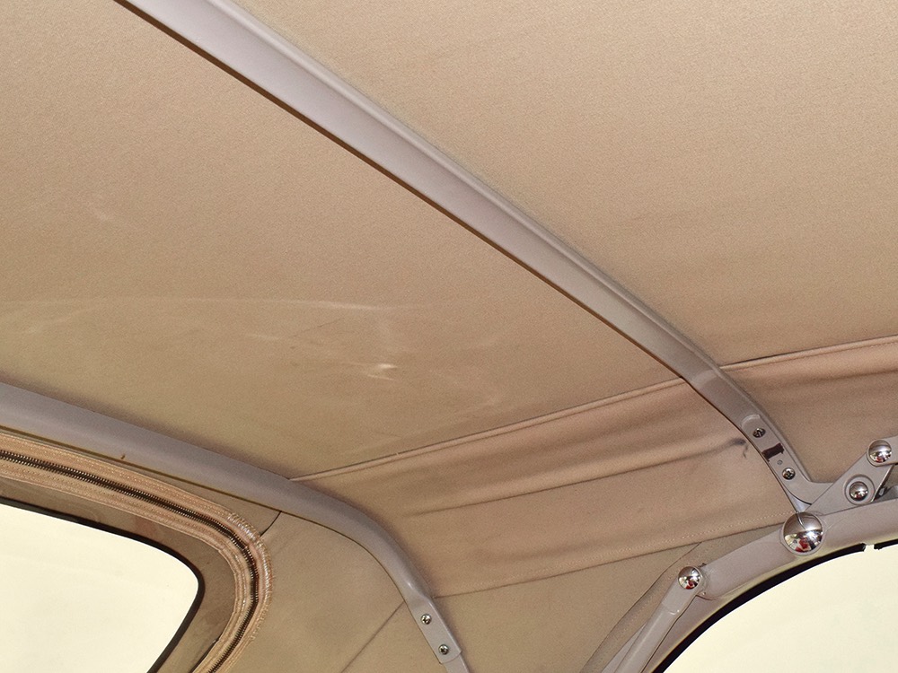 There were a myriad of engines available in the ’56 Fords, with this Sunliner carrying the top 312 cubic inch “Thunderbird Special” V8. With 225 horsepower on tap, it provides energetic performance and a fantastic swell of torque at just about any speed. Correct Ford Red paint, simple stamped valve covers, and that giant air cleaner all define Ford performance in the ‘50s. Detailing is excellent, with Ford script hoses, proper clamps, new wiring, and even a correct “12 VOLT” ink stamp on the blower motor (1956 was the first year Ford used a 12-volt electrical system). It starts easily, idles well, and makes great V8 sounds. The big radiator seems to have no trouble keeping things cool and it’s equipped with power steering, so it’s effortless to handle. This is a car that likes to be driven and it shows.