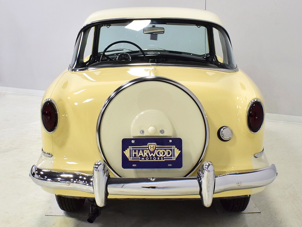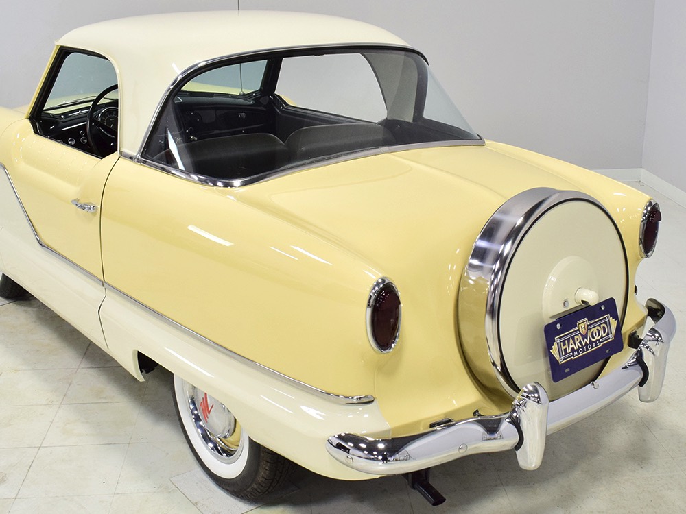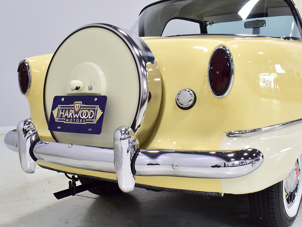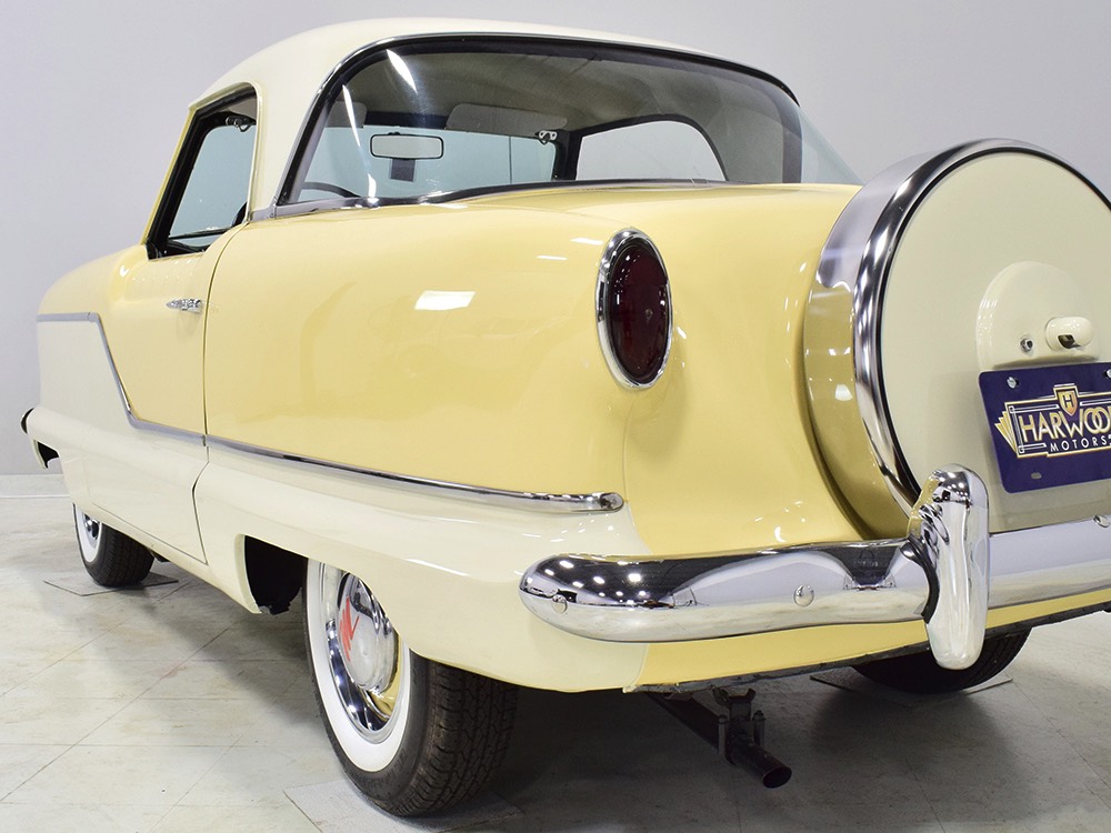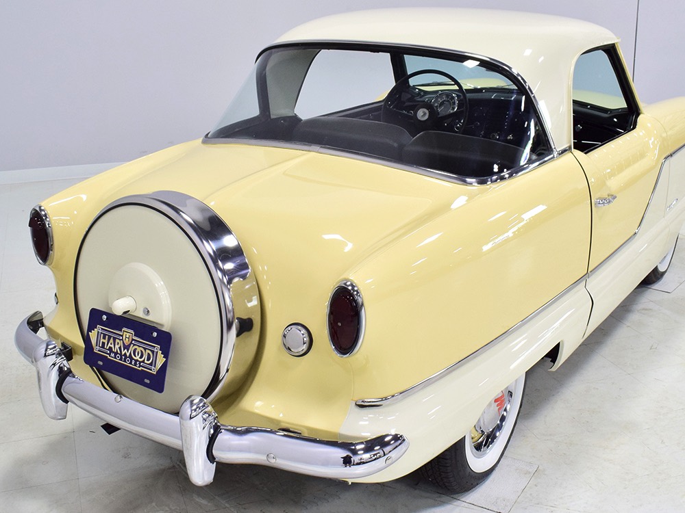 This particular 1958 Nash Metropolitan coupe has a lot of charm for not a lot of money. It has spent most of the last decade in a museum-like environment and was recently serviced so it’s ready to enjoy. Now some experts might be able to find a few things that aren’t quite factory-correct, but the fact is the fit and finish on this car are light years better than original and befitting of a car worth several times as much. The jaunty two-tone Autumn Yellow over Frost White paint scheme is original, but was only applied after the diminutive body was worked to really sparkle and it really paid off. Check out how tight the door gaps are, how crisp the grooves in the window sill are, and how crisp the line between yellow and white is across the hood. You’ll note there’s a darker yellow pinstripe separating the two, a nice detail that’s probably not quite stock but gives this car a much more expensive look. It's not perfect, but it's far, far nicer than a car at this price point has any right to be. All the chrome was professionally refinished, too, including the egg crate grille and unique bumpers. Out back there’s a continental kit, which was standard equipment on the Met, and it is surrounded by a chrome shell and a matching Arctic White face plate. This is a little car that makes a big statement!