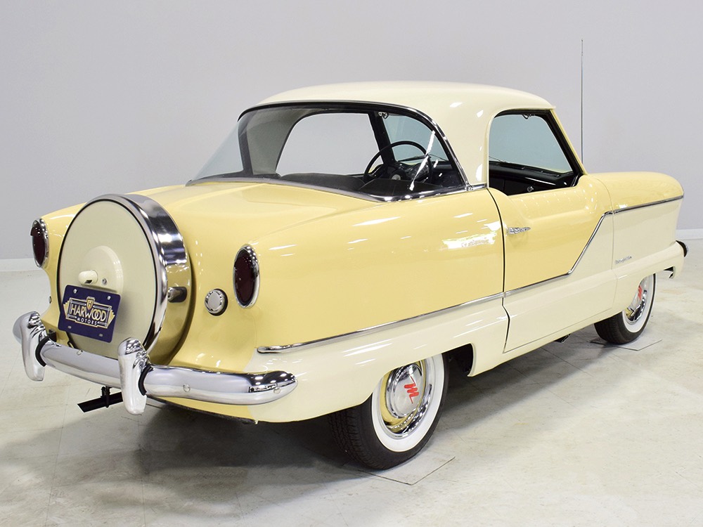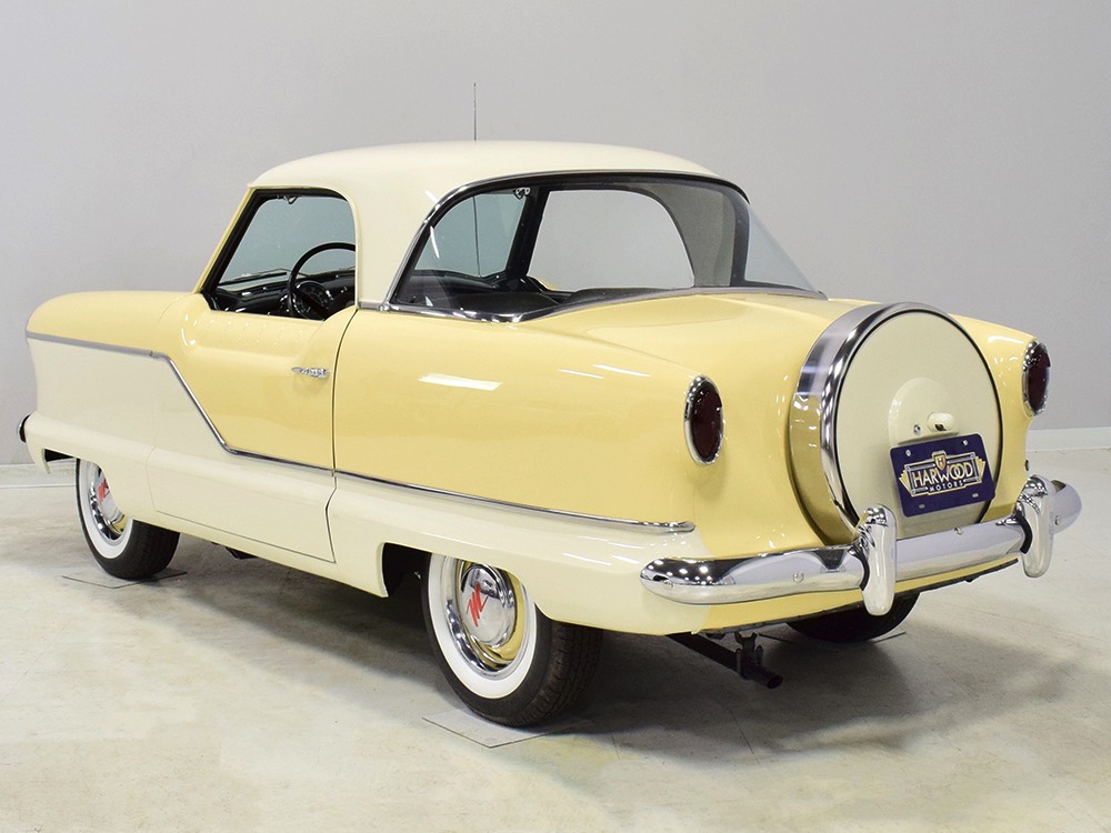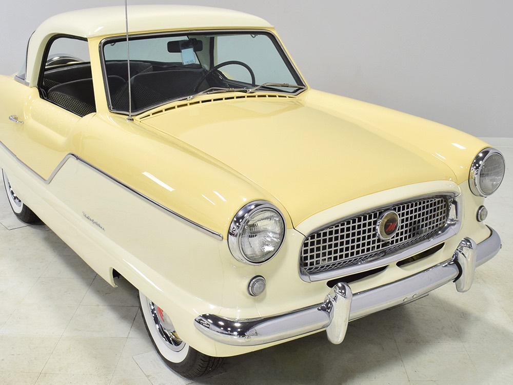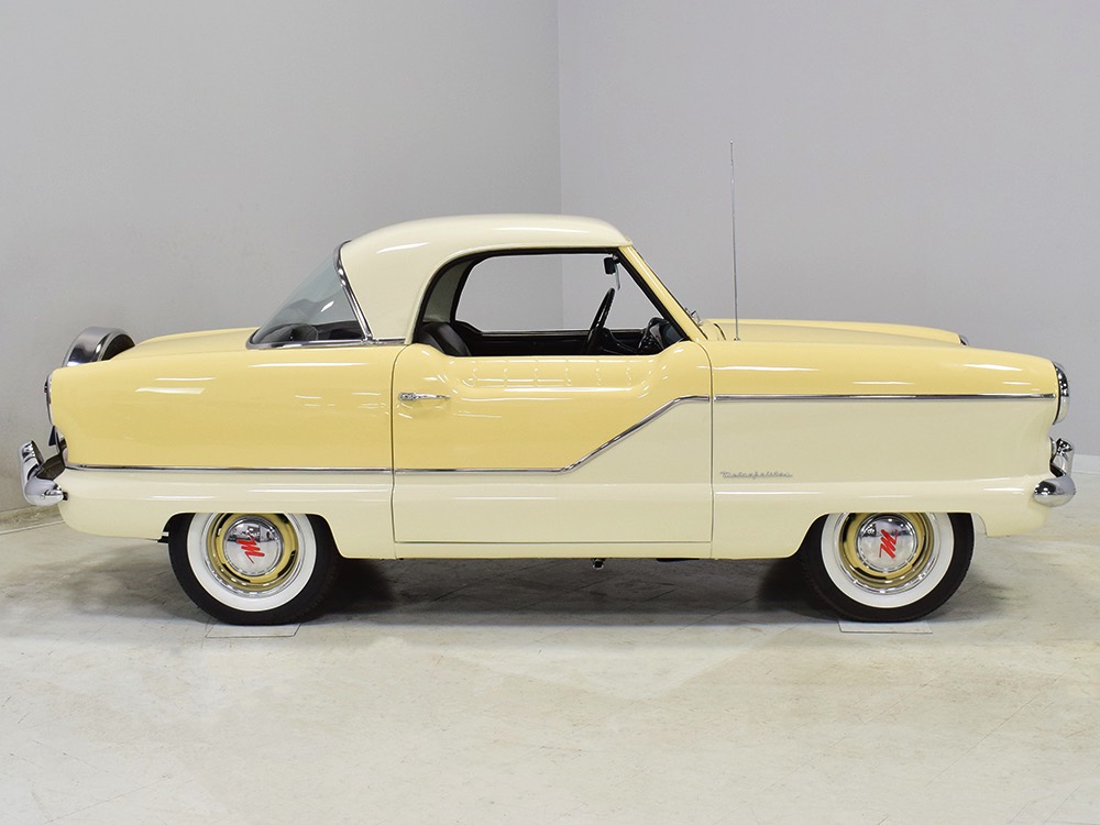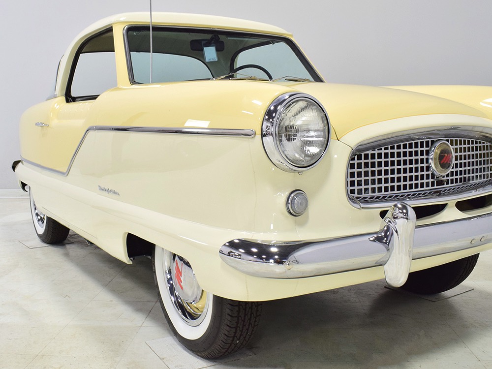 This particular 1958 Nash Metropolitan coupe has a lot of charm for not a lot of money. It has spent most of the last decade in a museum-like environment and was recently serviced so it’s ready to enjoy. Now some experts might be able to find a few things that aren’t quite factory-correct, but the fact is the fit and finish on this car are light years better than original and befitting of a car worth several times as much. The jaunty two-tone Autumn Yellow over Frost White paint scheme is original, but was only applied after the diminutive body was worked to really sparkle and it really paid off. Check out how tight the door gaps are, how crisp the grooves in the window sill are, and how crisp the line between yellow and white is across the hood. You’ll note there’s a darker yellow pinstripe separating the two, a nice detail that’s probably not quite stock but gives this car a much more expensive look. It's not perfect, but it's far, far nicer than a car at this price point has any right to be. All the chrome was professionally refinished, too, including the egg crate grille and unique bumpers. Out back there’s a continental kit, which was standard equipment on the Met, and it is surrounded by a chrome shell and a matching Arctic White face plate. This is a little car that makes a big statement!