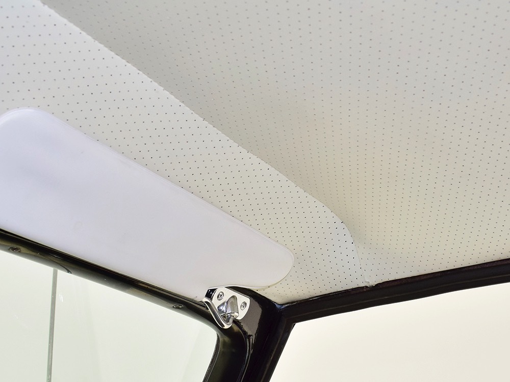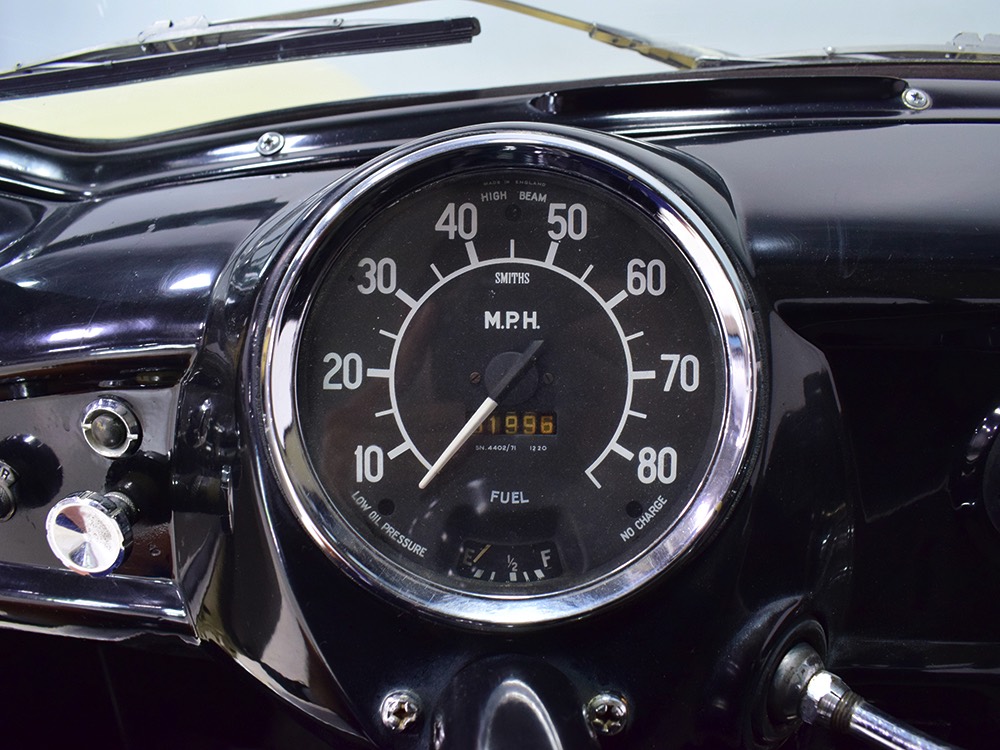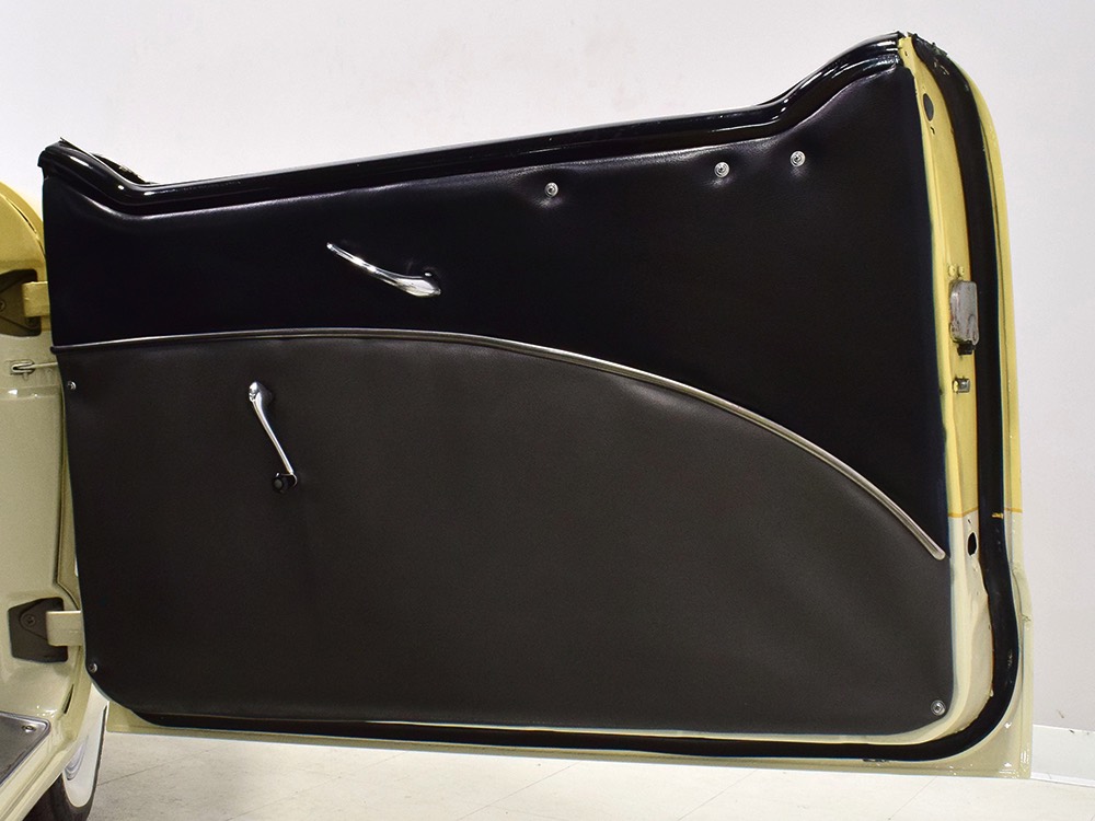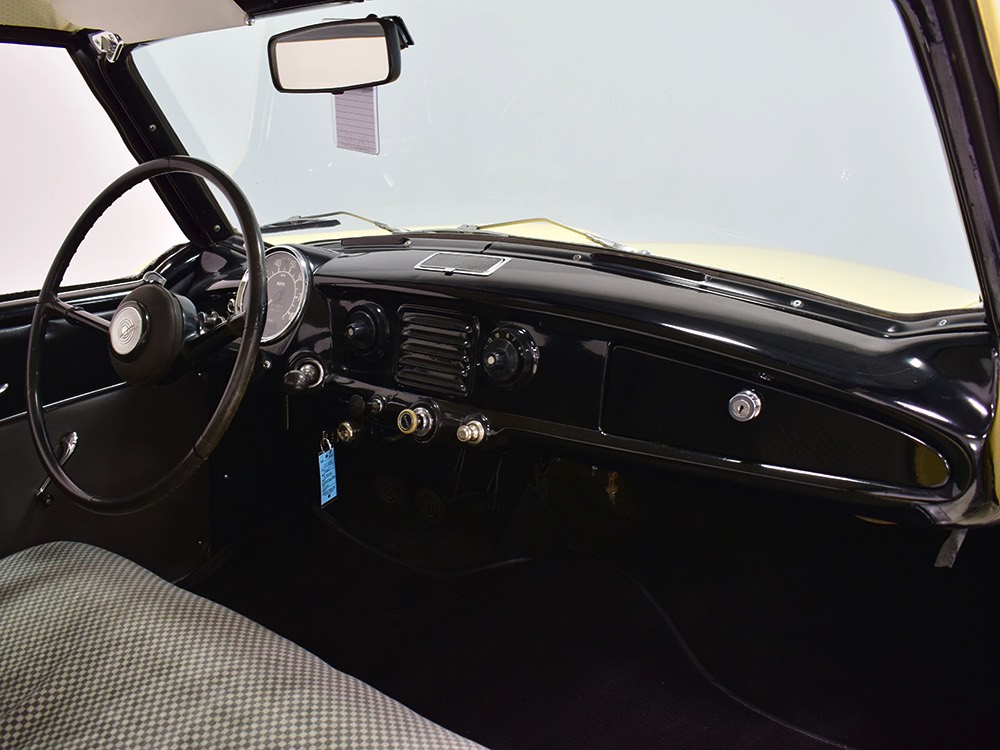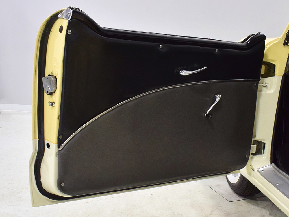 The Austin A90 donated its 1.5-liter four-cylinder engine making 50 horsepower and enough torque to feel peppy around town. Bearing in mind the car’s modest size and weight, performance is energetic and you’ll find yourself zipping around corners, one of the many benefits of the lightweight design. The engine has been rebuilt and detailed, with bright green paint on the engine itself and properly finished accessories around it. A 1-barrel Zenith carburetor handles induction chores and a reproduction exhaust system gives it an authentic sound that’s sporty without being annoying. Service work included a tune-up, so it starts easily, idles well, and doesn’t have any hiccups in its behavior on the road. It isn’t a long-distance cruiser, but if you use it as intended, you probably won’t be able to have more fun in a car. The three-speed manual transmission shifts nicely and clutch take-up is light, and the engine is torquey enough that you won’t need to do a lot of shifting on the road. Brakes are effective, with drums at all four corners, and steering effort is ideal for tight spots. You’ll also be pleased to note that tires are recent 175/80/13 whitewall radials, which ride well and are still quite affordable, making this a hobby car that’s easy on the wallet now and in the future.