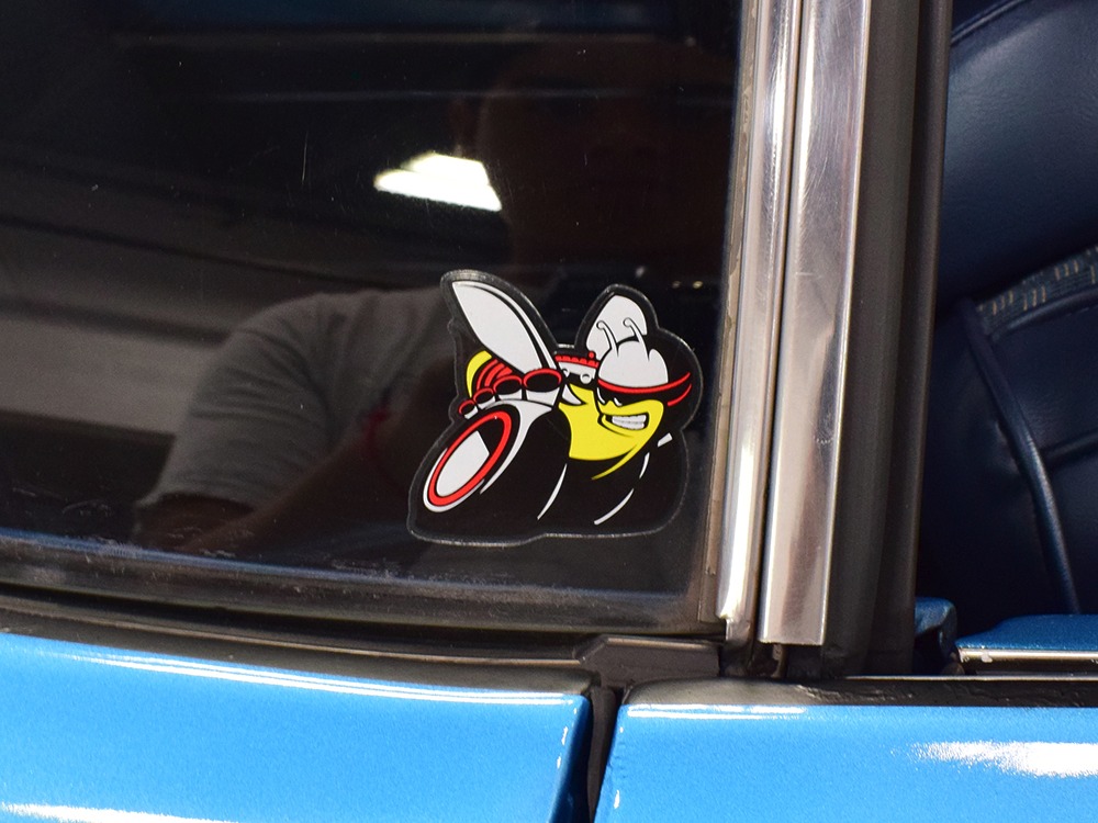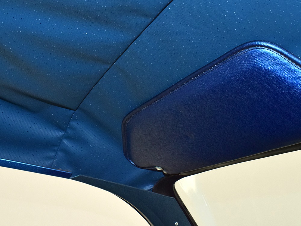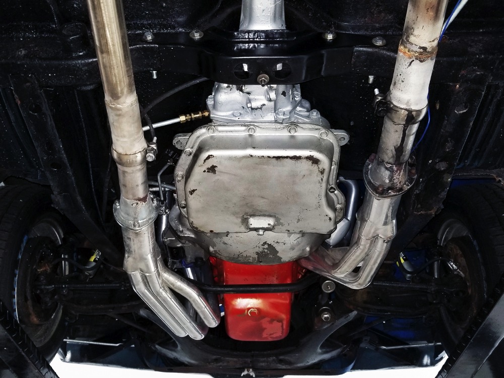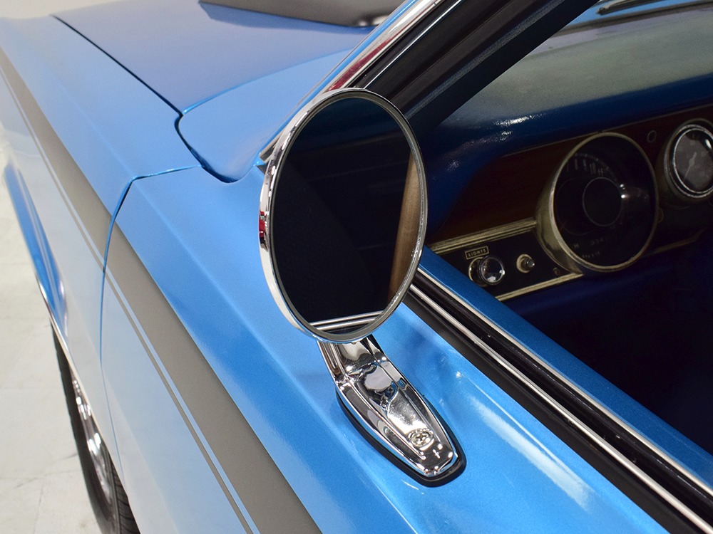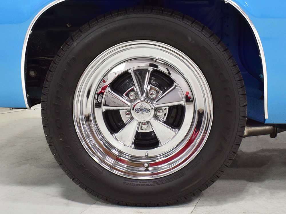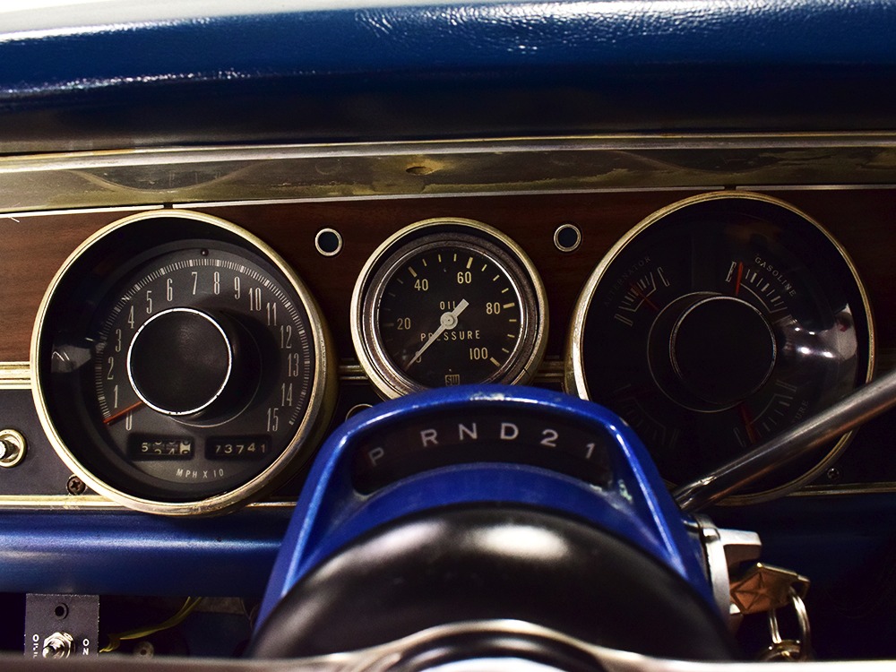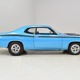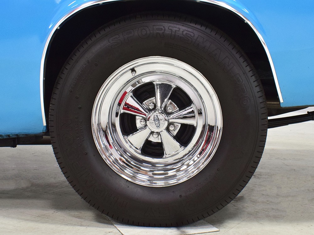 What this Duster really does best is hammer down the road, mostly thanks to the freshly built 340 cubic inch V8 living under the hood. It would be a mistake to dismiss this small block, as more than a few guys in their 440 ‘Cudas were embarrassed by similar cars back in the day. This one is even more potent, having been recently rebuilt with an upgraded cam that gives it a lopey idle, an Edelbrock 600 CFM 4-barrel carburetor on a Weiand intake manifold, and beautiful ceramic-coated long-tube headers that help build torque. It is indeed beautifully detailed with Hemi Orange paint on the block, finned Mopar Performance valve covers, and a chrome air cleaner, but the most remarkable thing is that when you turn the key, it springs to life almost instantly and idles well even when it’s cold. The guys at Customs Unlimited spent a lot of time tuning this one to get it right. You’ll note that the bright blue paint in the engine bay is just as nice as the rest of the body, and almost every single external component is new, not just cleaned up and bolted back on. There’s easily twice the asking price wrapped up in the restoration.