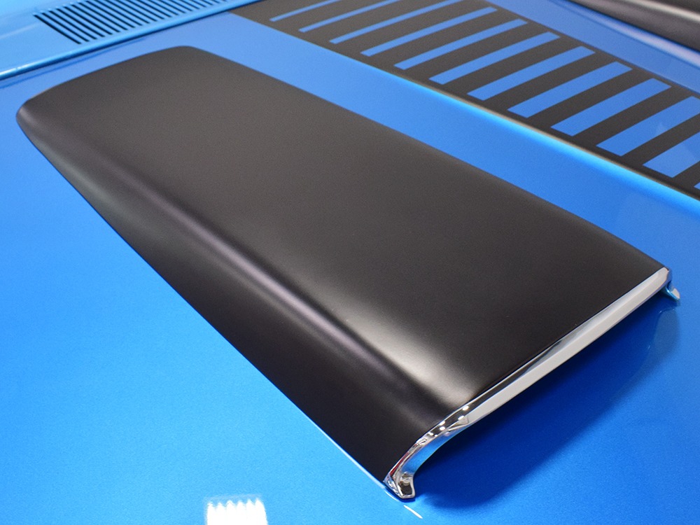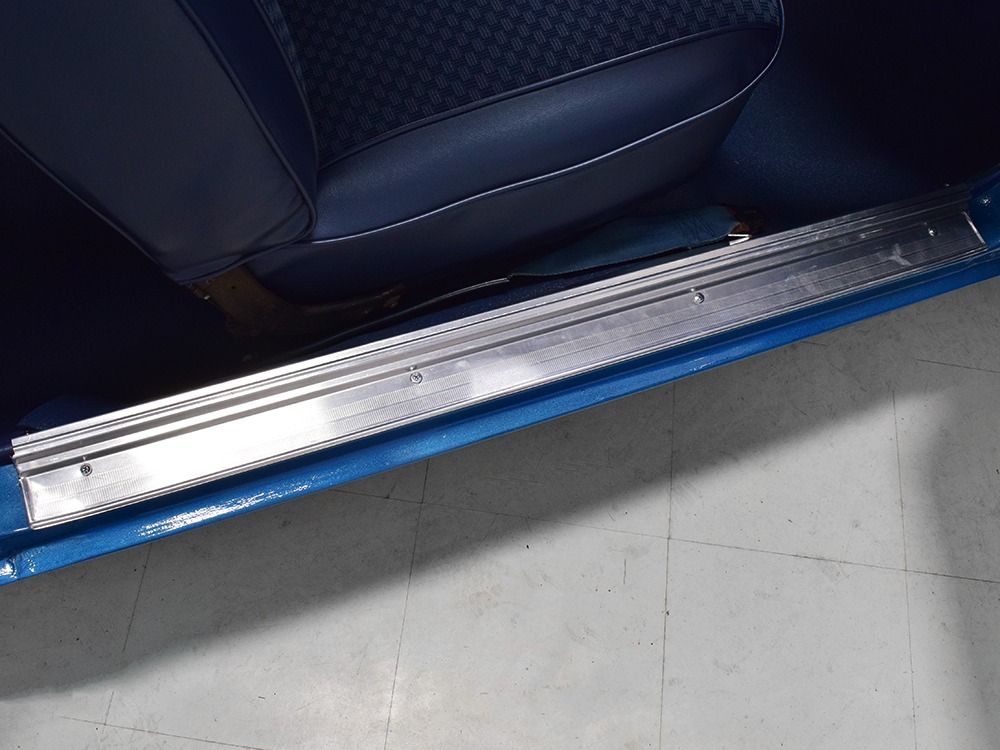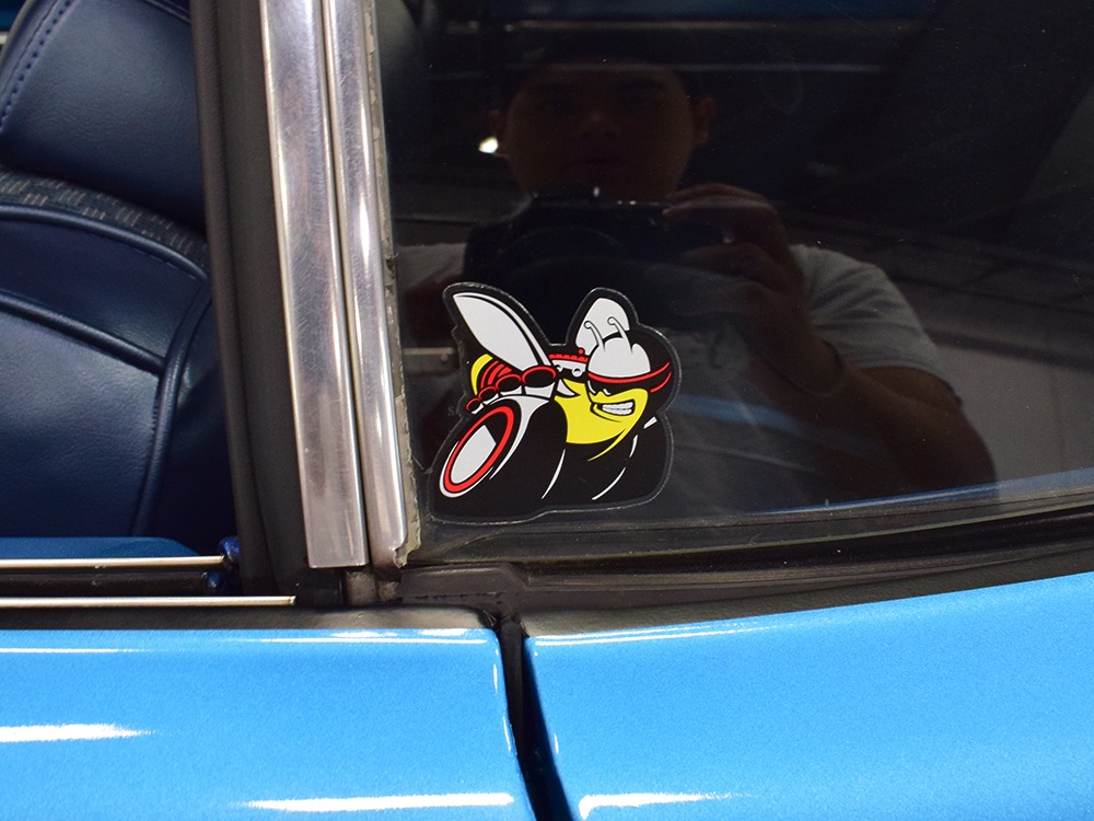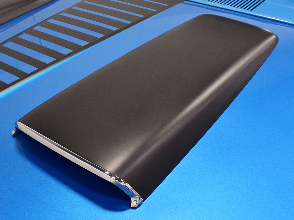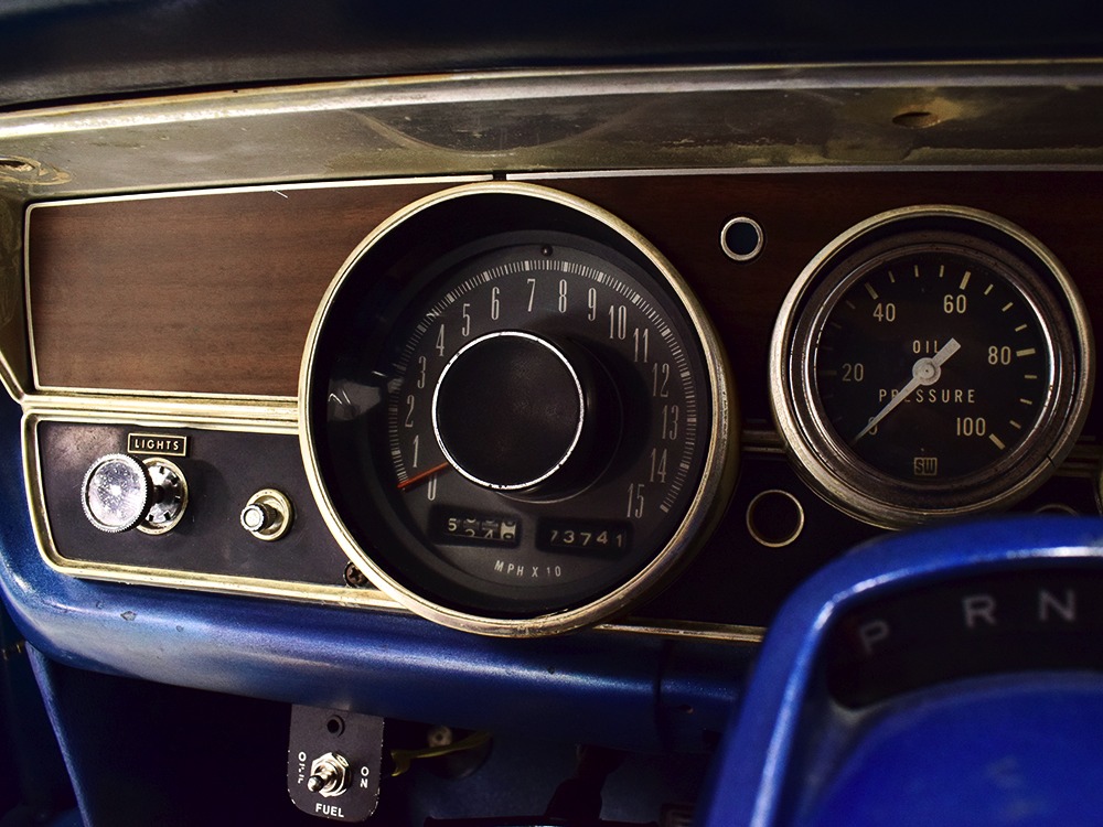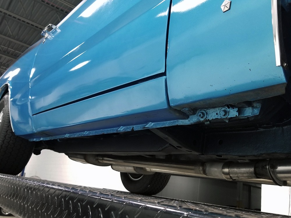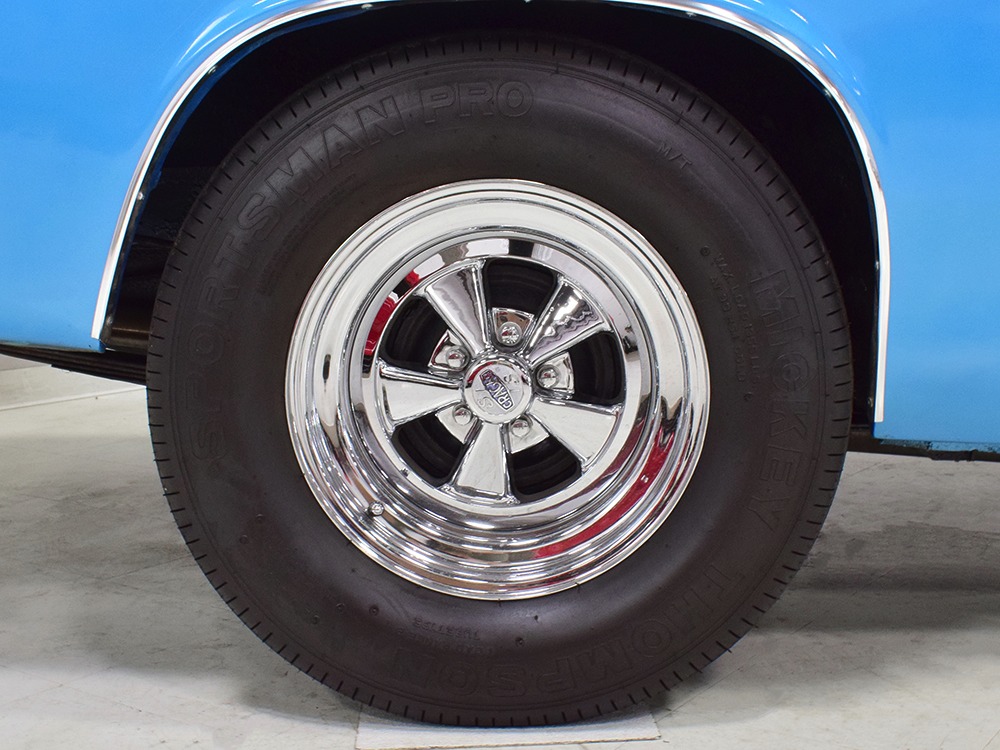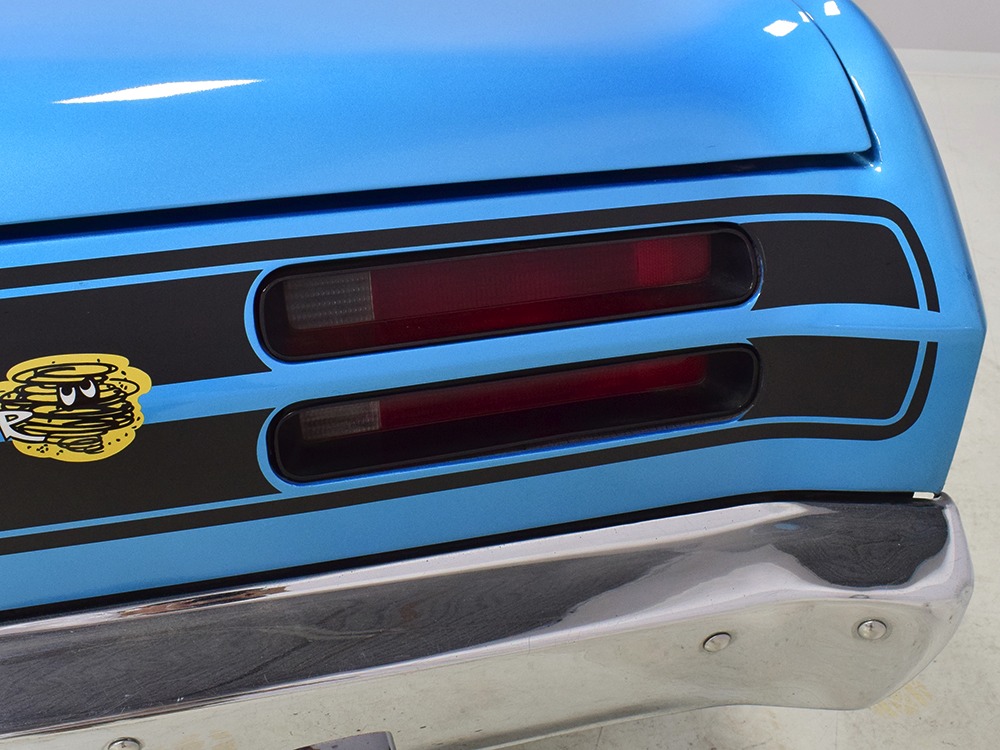 What this Duster really does best is hammer down the road, mostly thanks to the freshly built 340 cubic inch V8 living under the hood. It would be a mistake to dismiss this small block, as more than a few guys in their 440 ‘Cudas were embarrassed by similar cars back in the day. This one is even more potent, having been recently rebuilt with an upgraded cam that gives it a lopey idle, an Edelbrock 600 CFM 4-barrel carburetor on a Weiand intake manifold, and beautiful ceramic-coated long-tube headers that help build torque. It is indeed beautifully detailed with Hemi Orange paint on the block, finned Mopar Performance valve covers, and a chrome air cleaner, but the most remarkable thing is that when you turn the key, it springs to life almost instantly and idles well even when it’s cold. The guys at Customs Unlimited spent a lot of time tuning this one to get it right. You’ll note that the bright blue paint in the engine bay is just as nice as the rest of the body, and almost every single external component is new, not just cleaned up and bolted back on. There’s easily twice the asking price wrapped up in the restoration.