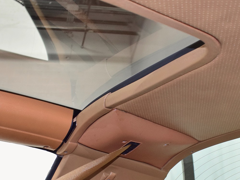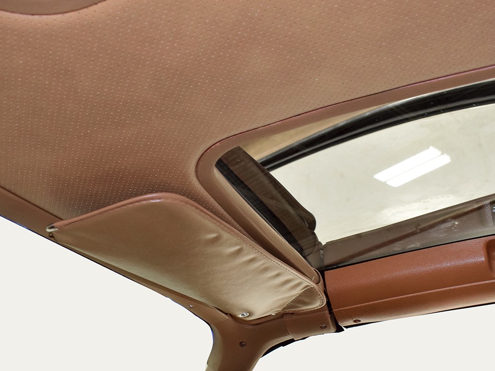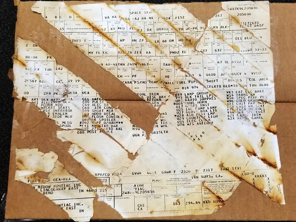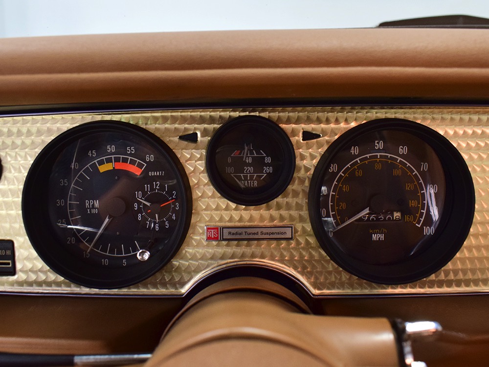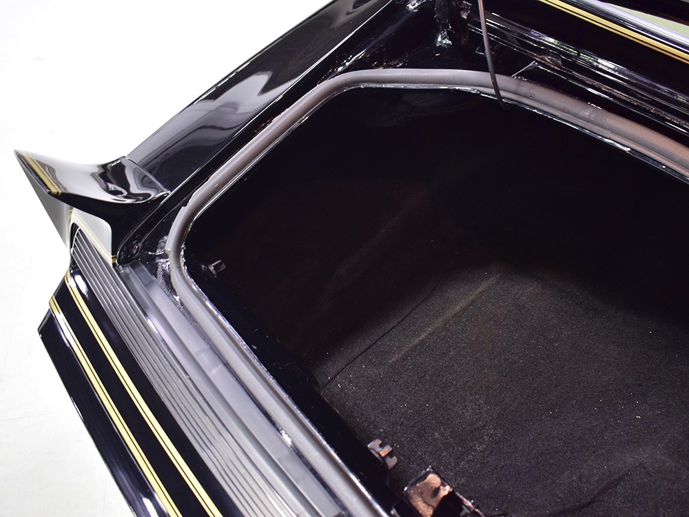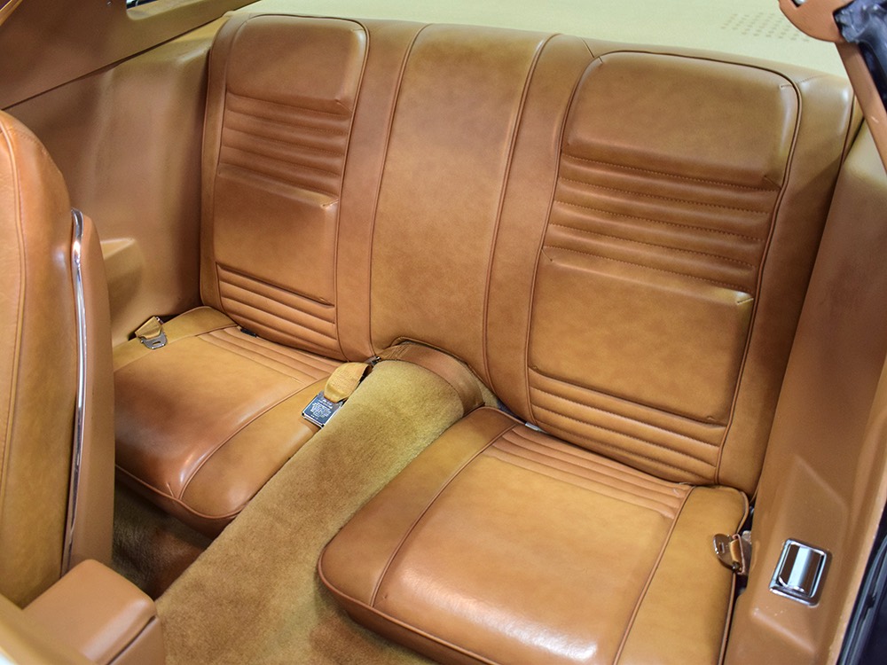 The tan vinyl interior is likewise extremely well preserved with a few restored pieces to really make it look its best. Fresh carpets keep it bright and there’s new foam under the seat covers to make the seats all-day comfortable. Of course, as a top-of-the-line Firebird, this one came with just about every available option, including cold A/C, power windows, a tilt steering wheel, and a rear defroster. Standard equipment included the awesome engine-turned dash and a full complement of gauges, all of which are fully operational. The steering wheel, dash pad, and console are in exemplary condition with no signs of UV damage or cracking that GM plastics often show after four decades. The only non-stock parts are the Pioneer AM/FM/cassette stereo head unit and a Craig mix unit in the console. Headliners are always problematic on GM cars, particularly those with T-tops, but this one is still taut and the weather seals in the T-tops are in good condition so they seal up nicely. The trunk is correctly finished with the original mat and what appears to be the original space-saver spare that has never been used.