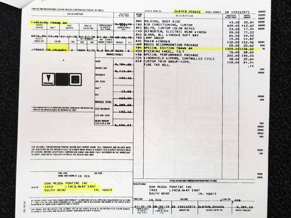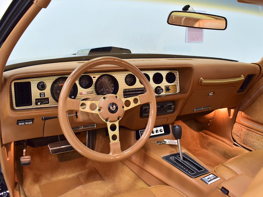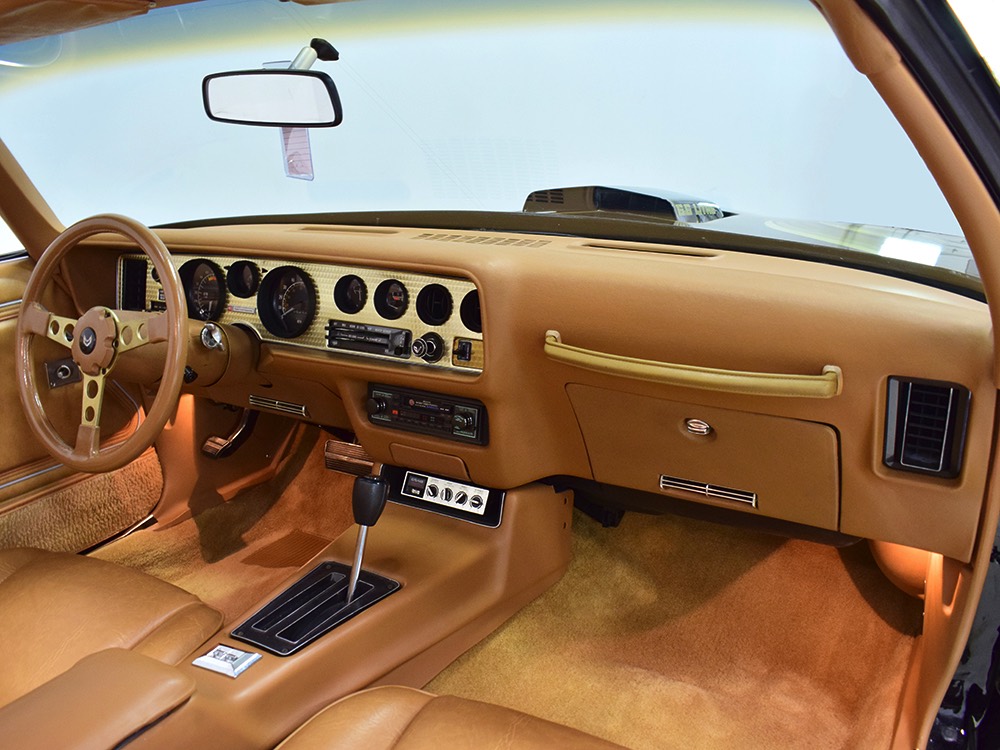 This is a real-deal SE WS6, the top-of-the-line in 1979 and iconic from any angle. And we have to admit, the design has aged rather well. The ‘79s were heavily revised and look longer, lower, and sleeker than the earlier cars, mostly thanks to the redesigned nose cone and chin spoiler borrowed from the Corvette. With just 29,620 original miles, this one is in superb condition in every way and drives like a much younger car. It was repainted just last year in its original Starlight Black and obviously all the decals are new, so it looks crisp and sharp—probably better than GM could muster in 1979. There was no rust repair required, so every panel is as straight as it was when it popped out of the press out in Van Nuys, California and delivered to Don Medow Pontiac in South Bend, Indiana. Modern paints give it a fantastic deep gloss, and if not for the micro-blisters on the hood and deck that can probably be buffed out, it would be almost perfect. Note how well the rear spoiler fits, the way the hood sits flush with the fenders and the laser-straight crease that runs from nose to tail. If these cars were a joke, they aren’t any more and you’ll find that looking this one over fills you with a sense of respect. This car has attitude!