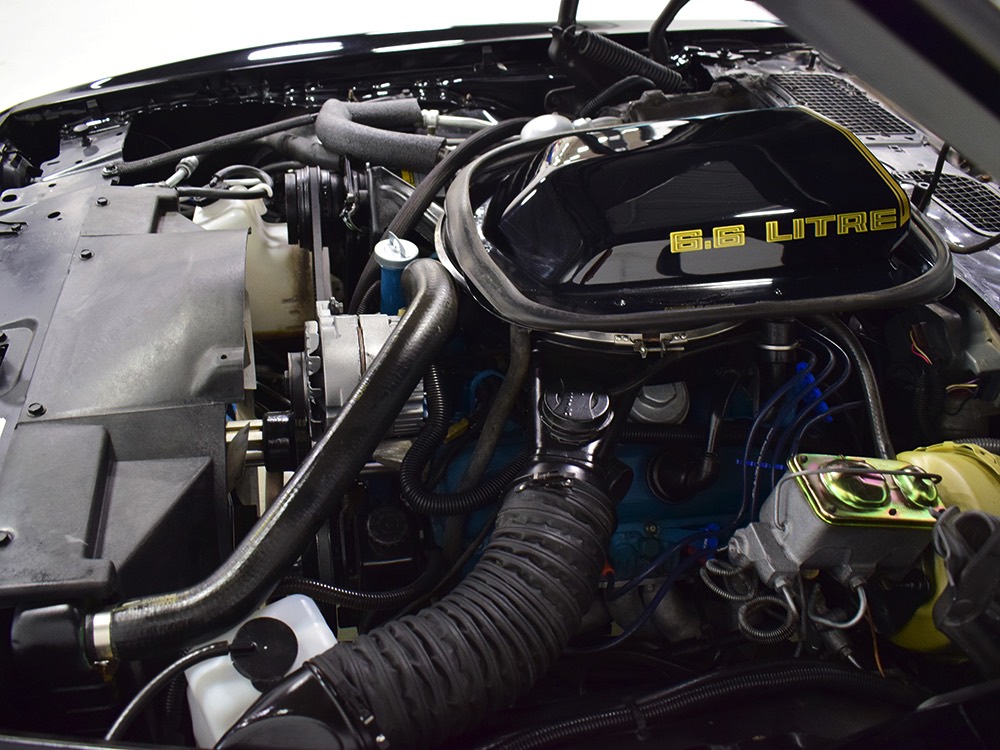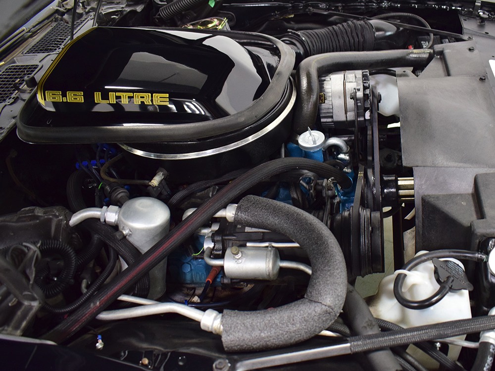 This Trans Am comes the way Burt’s did: a 403 cubic inch V8 linked to an automatic transmission (never mind the soundtrack, he wasn’t shifting). The numbers aren’t mind-blowing in today’s world of 800 horsepower Dodges on the showroom floor, but the Olds-built 403 makes great torque and genuinely makes the Trans Am a lot of fun to drive. This is the car’s original, numbers-matching engine and it was pulled, detailed, and reinstalled to make it look its best. Turquoise engine enamel, that big hood scoop on top of the air cleaner, and factory-style fittings throughout making this one look right. The only notable deviation from stock is a set of long-tube headers and a true dual exhaust system which probably add more than a few horsepower (the factory system with catalytic converter was notoriously restrictive). It also starts easily, idles well, and pulls the car around with a nice hit of low-end torque and no real complaints. Drive it gently and it’s quiet and compliant, but hammer it and it’s happy to wind around the tach, which is a big part of why this F-body is so fun to drive.